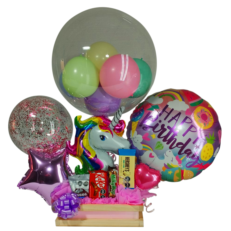 - 1 Globos burbuja 10″. (24cm aprox.).