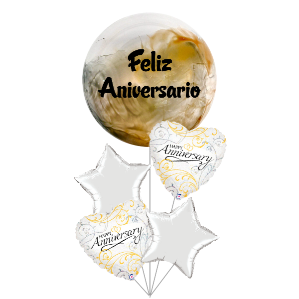 - 1 Globo Feliz Aniversario BURBUJA 24″ (66 cm aprox.).