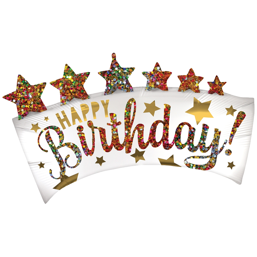 - 1 Globo Hbd Glitter Banner 26″ (66cm aprox.).